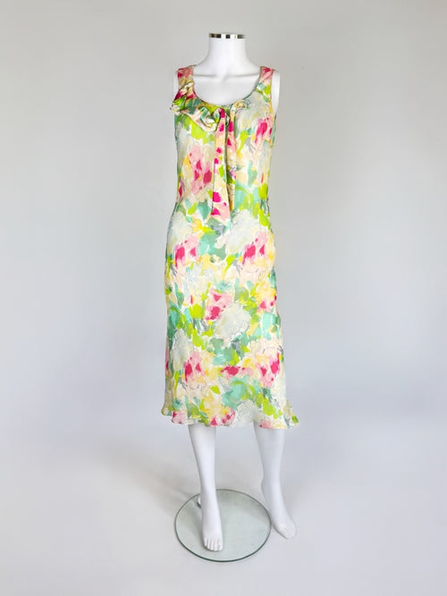 John Galliano Watercolour Floral Print Silk Dress Ensemble, SS 2005